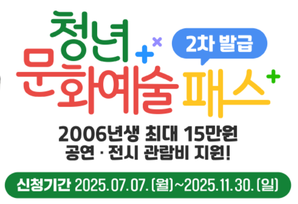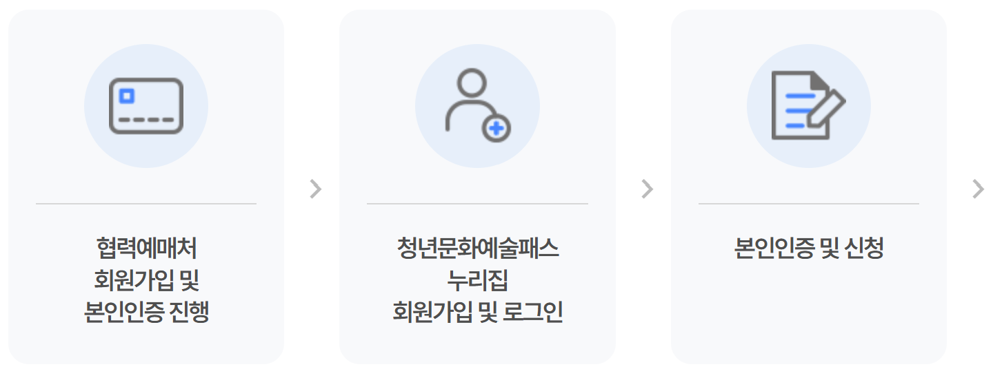 신청 방법: ‘청년 문화예술패스’ 공식 누리집(https://youthculturpass.kr) 접속 → 본인 인증 → 참여기관 선택 및 신청